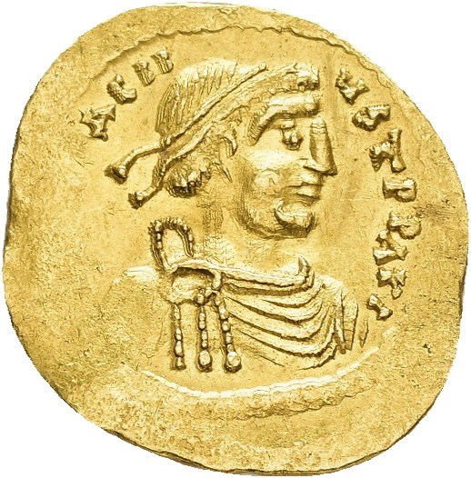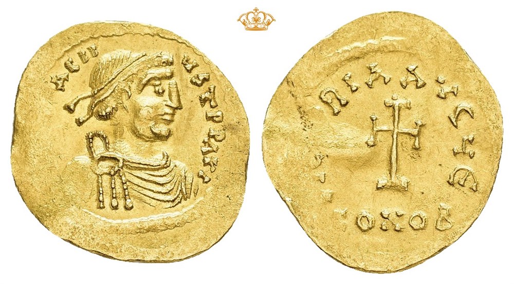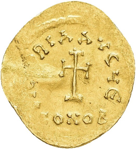 Heraclius 610-641 AD. AV Tremissis (16 mm; 1.45 g). Constantinople mint, struck 613-641 AD. Obverse: δ N hЄRACLIЧS T P P AVI, Diademed, draped and cuirassed bust of Heraclius right. Reverse: VICTORIA AVϚЧ S - CONOB, Cross potent. Areas of weak strike. Sharply struck portrait with fine details.