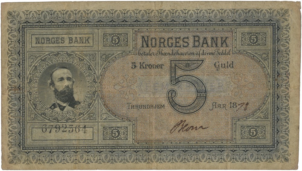 - 5 kroner 1878. 6792364. Signert Blom. (15189743)
