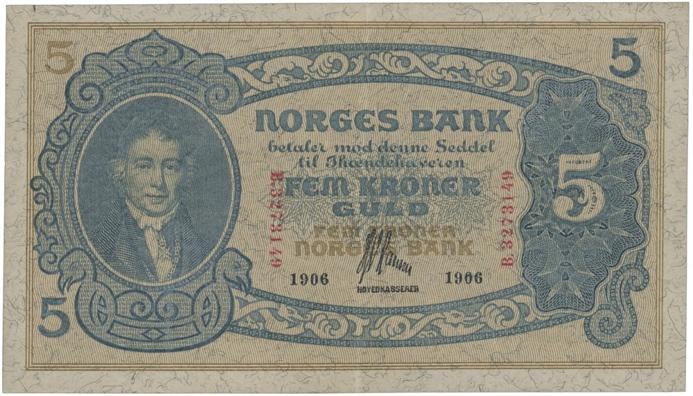 5 kroner 1906. B.3273149. Sjelden/rare.