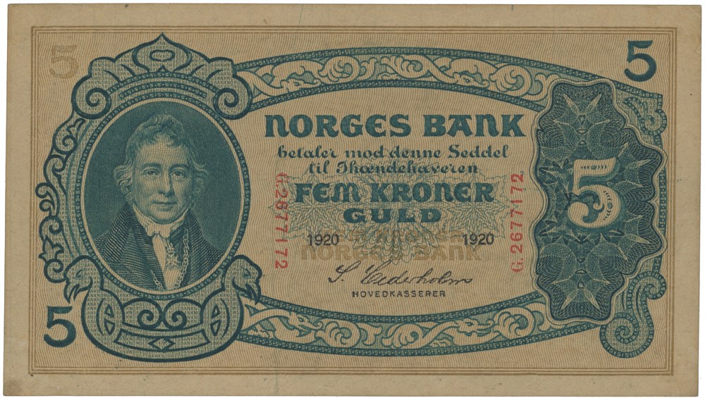 5 kroner 1920. G.2677172. Ørliten flekk i hjørnet/tiny stain.