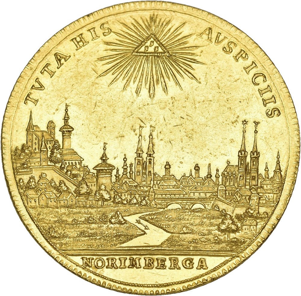 6 Ducats 1745, Nuremberg. 20.95 g. Traces of handling.