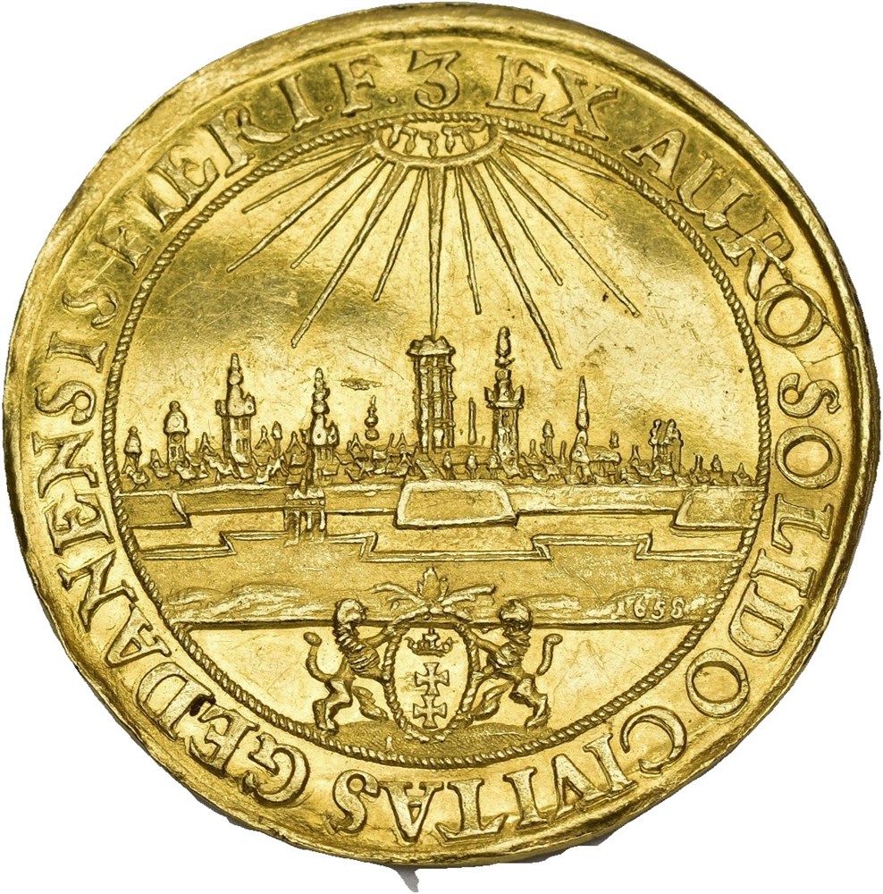 3 Ducats 1658, Danzig. 10.32 g. Wavy flan, minor scratches.