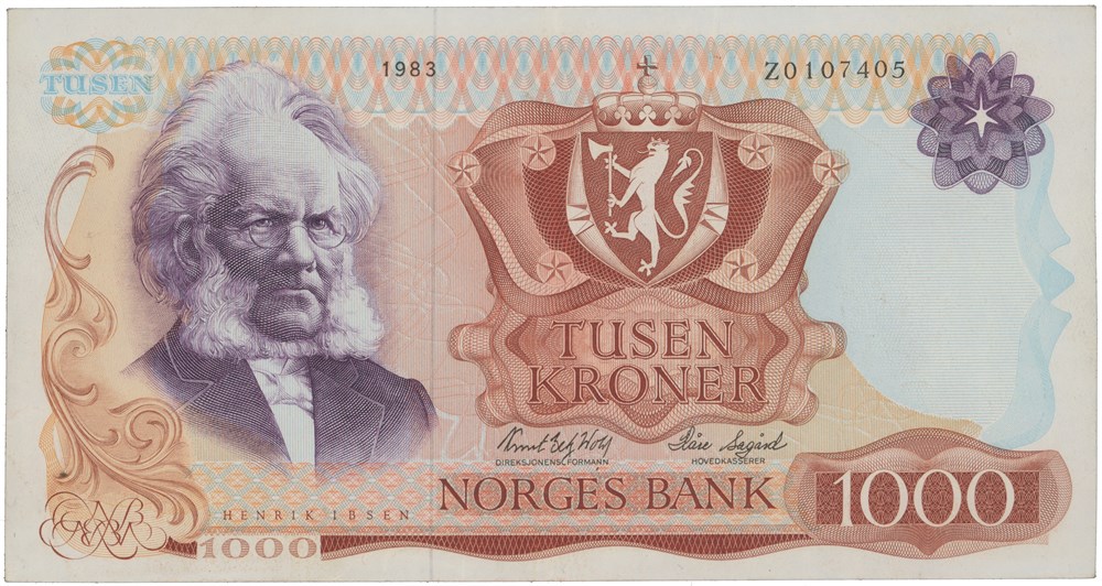 - 1000 kroner 1983. Z0107405. Erstatningsseddel/replacement note. (15206782)