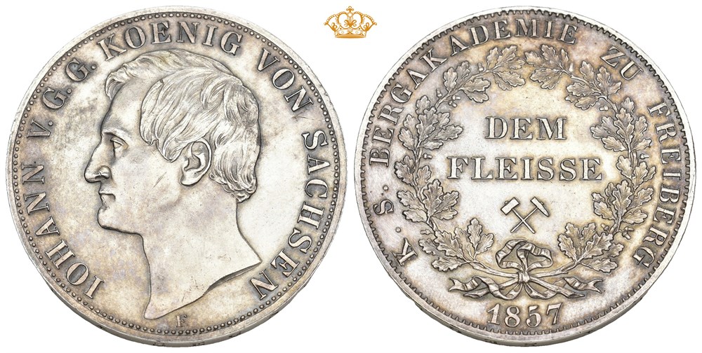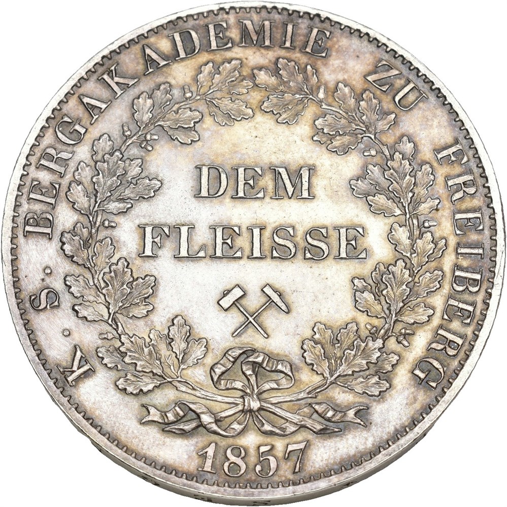 2 Taler 1857, Dresden. 37.09 g. Freiberg Bergakademie. Rare. Mintage only 100 pcs.