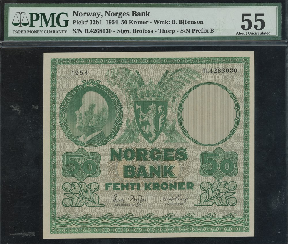 50 kroner 1954. B.4268030. Signert Brofoss/Thorp.