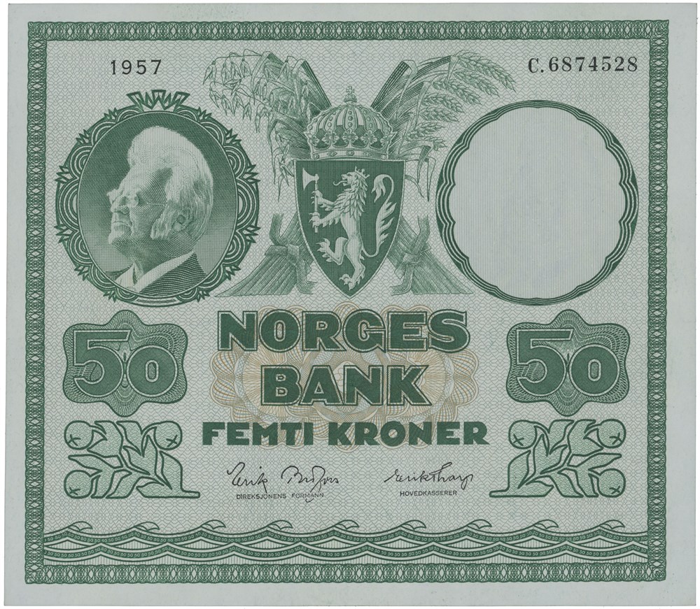 50 kroner 1957. C.6874528. Vannmerke type 2.