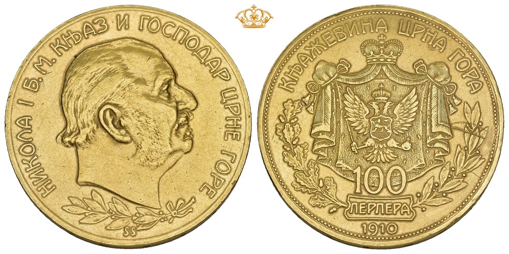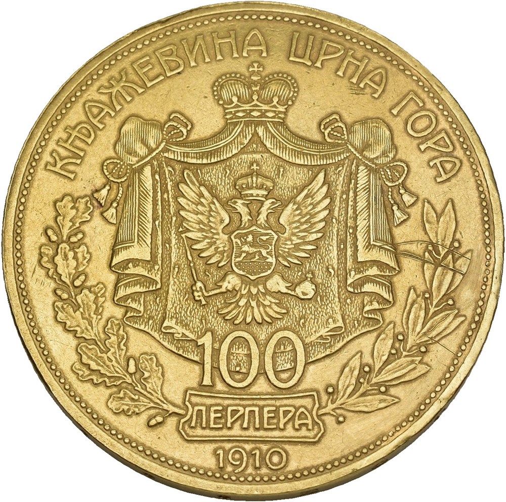 100 Perpera 1910, Vienna. 33.81 g. Traces of mounting, cleaned, scratches.