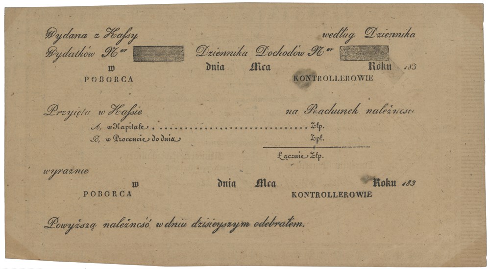 200 zlotys 1831. No. 5051. Signed Hilary Ostrowski and Leon Dembowski. Cut unevenly at the bottom.