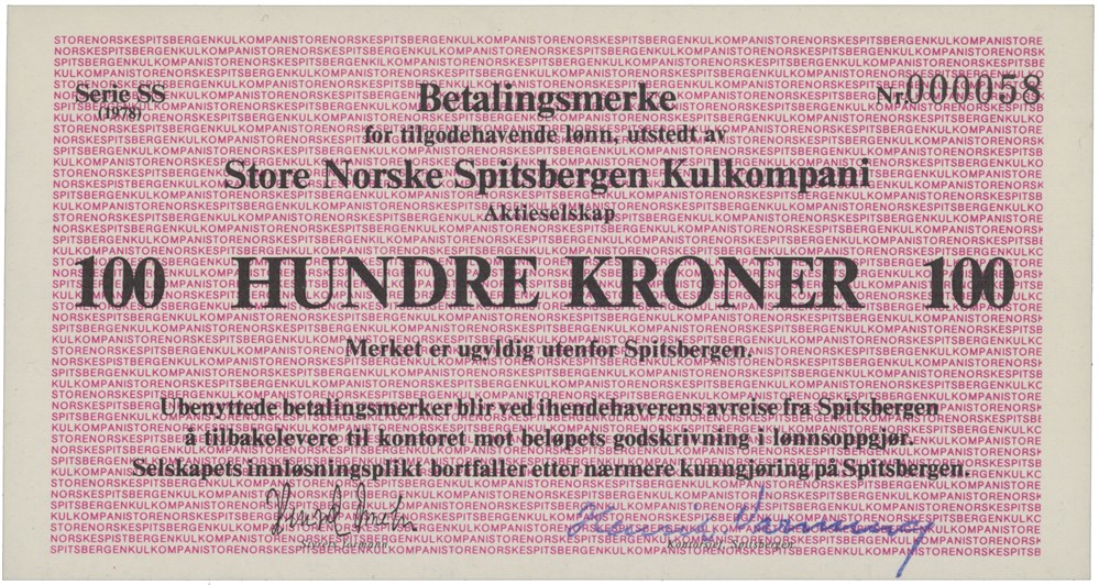 - 100 kroner 1978. Serie SS. Nr. 000058. (15232271)