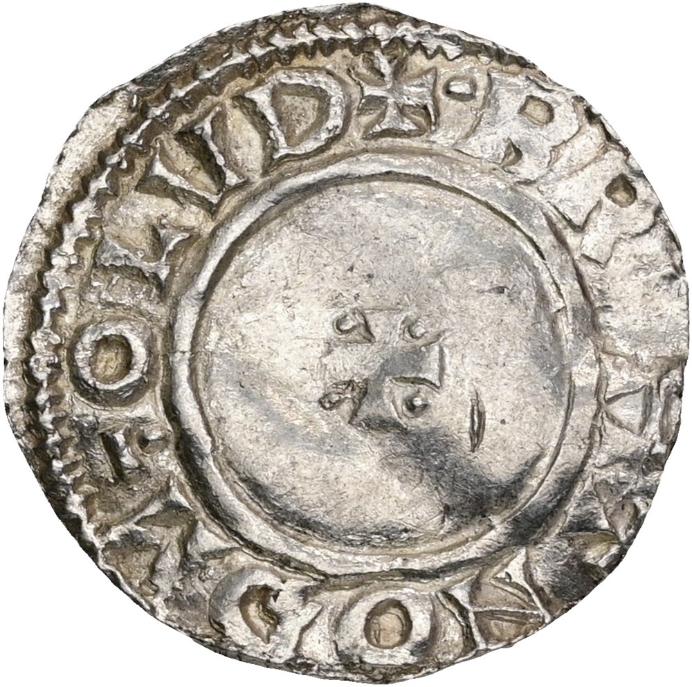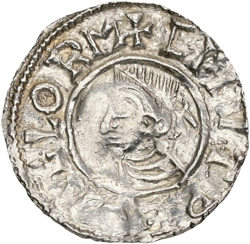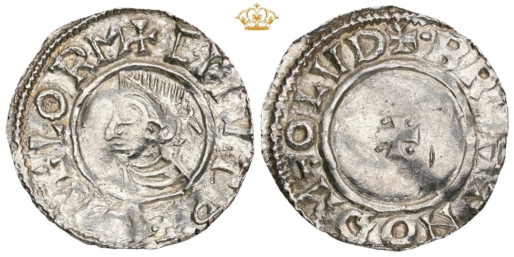 Pent eksemplar av denne typen, som har en direkte forbindelse til Æthelred IIs Short Cross-type fra ca. 1009–1017. Baksiden er uvanlig med de fire små prikkene ved korset.