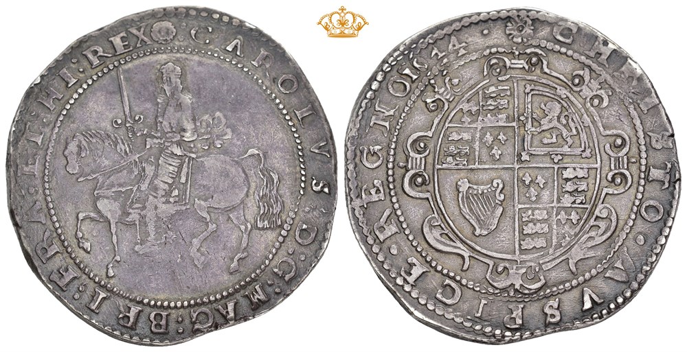 Crown 1644, Exeter. 28.08 g. Beautiful patina.