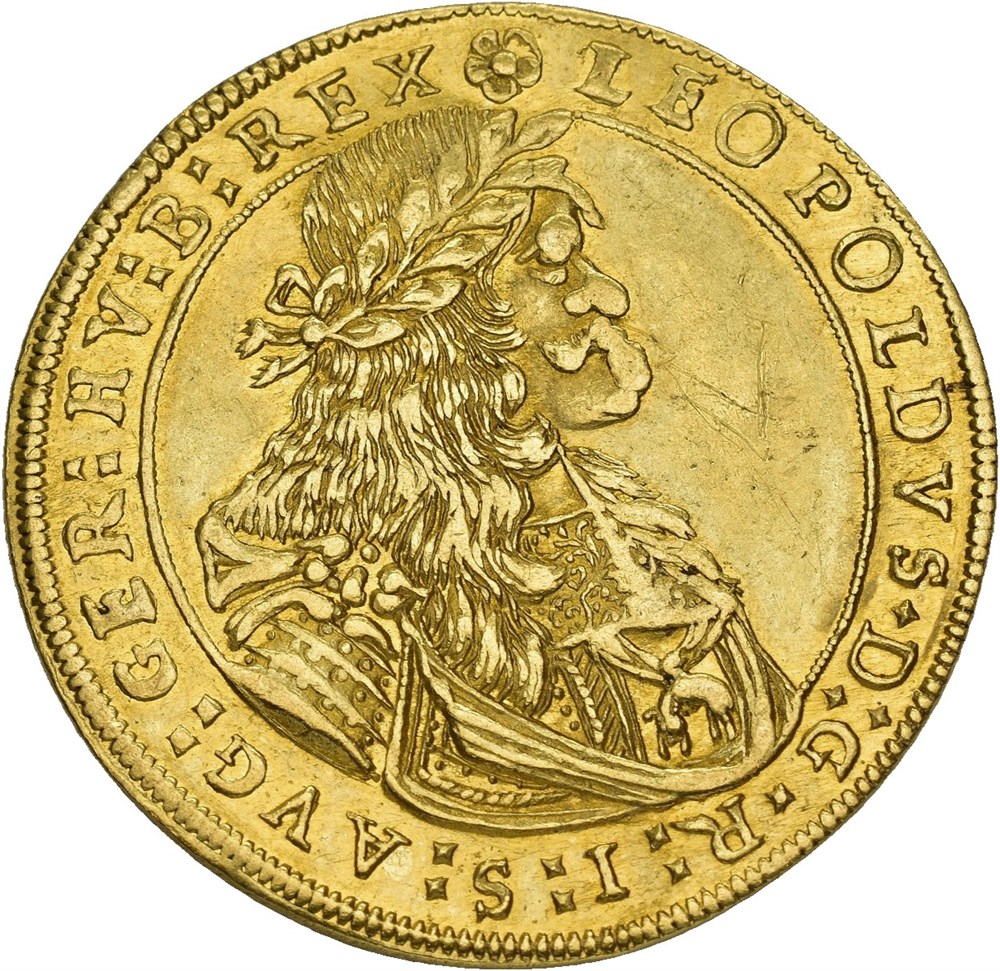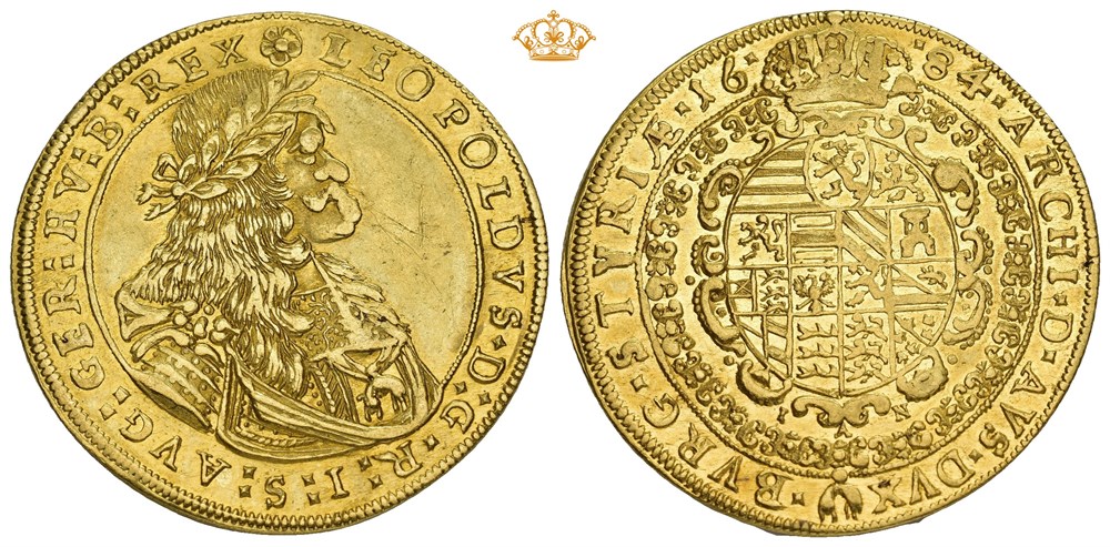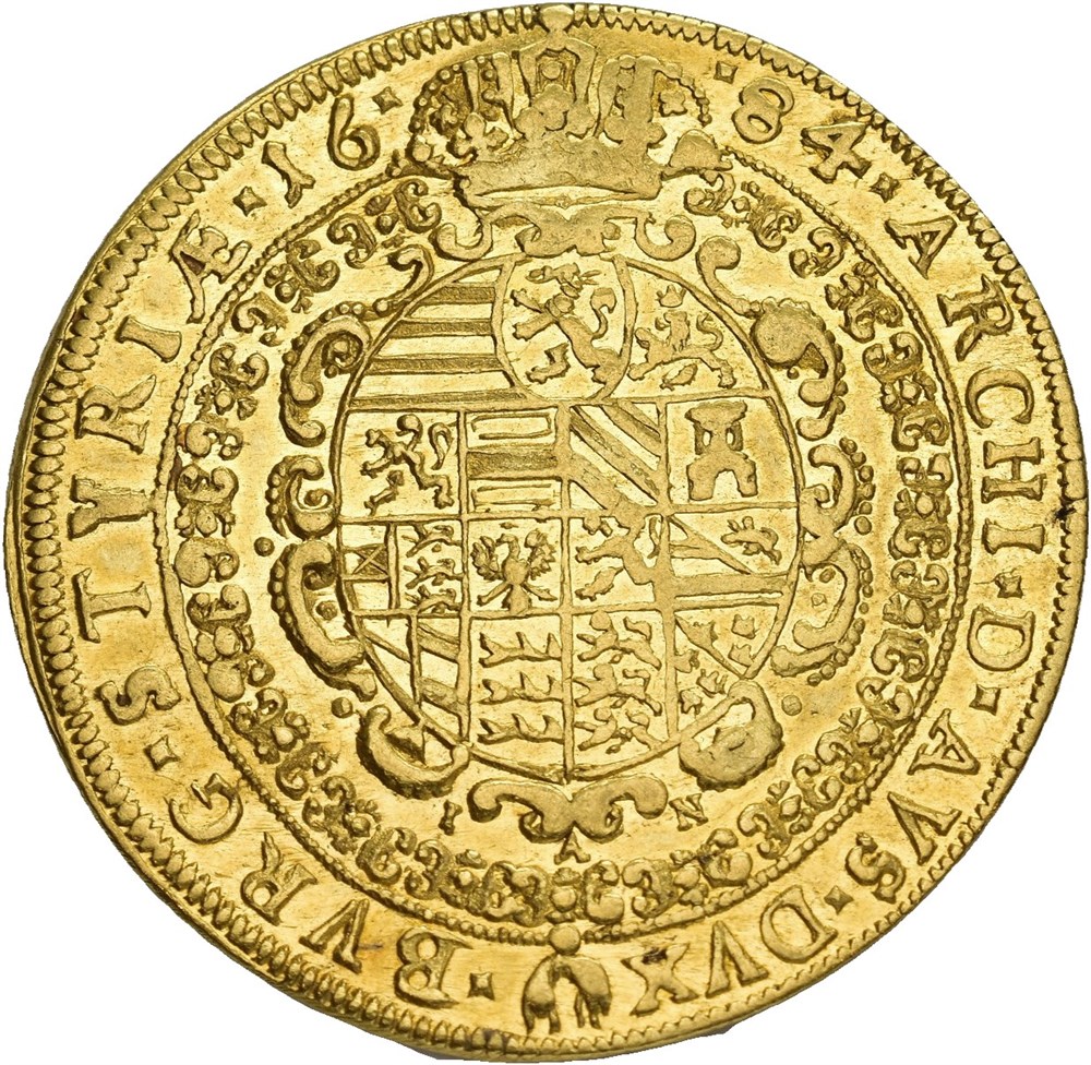 5 Ducats 1684, Graz. 17.29 g. Lustrous. Minor scratches on obverse. Extremely rare.