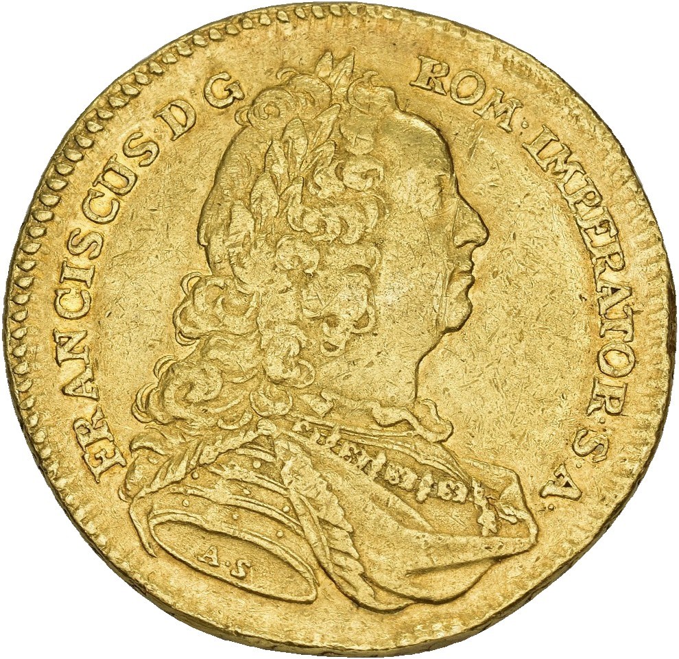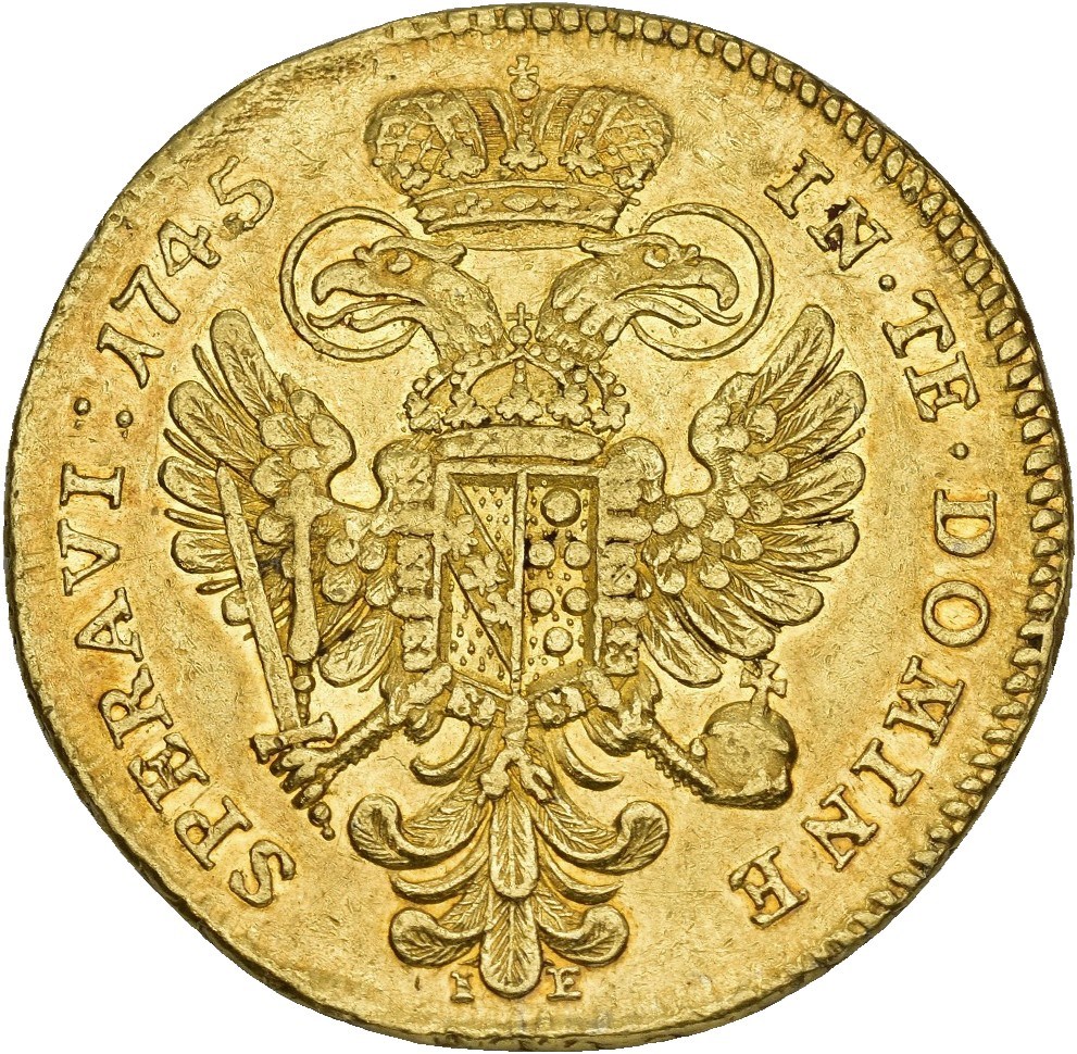 5 Ducats 1745, Vienna. 17.28 g. Minor planchet flow. Rare.