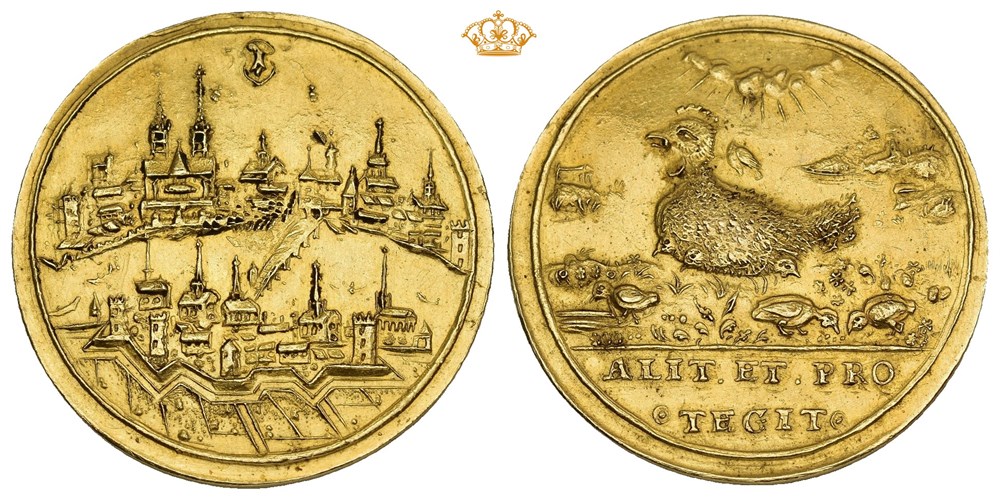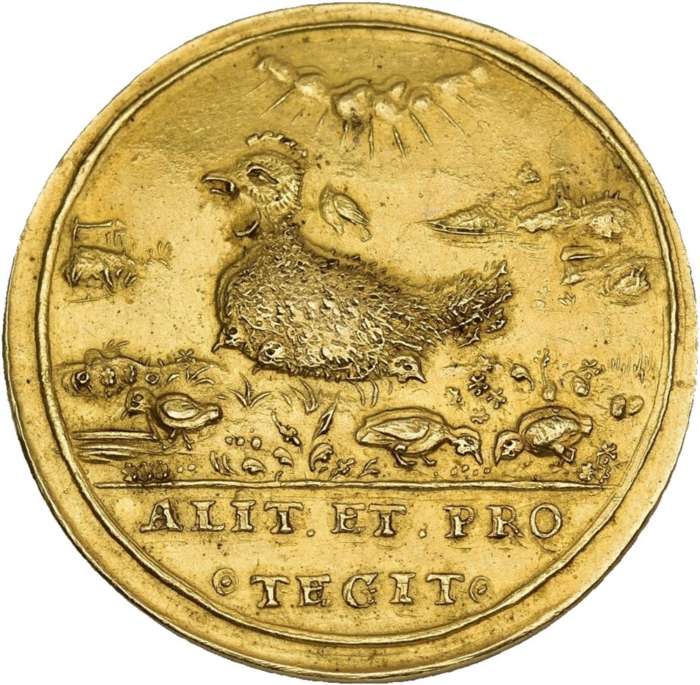 Medallic 3 Ducats ND (17th century). 10.06 g, "Clucking Hen", engraved by Stefan Heinrich. Gold, 29mm. Possible minor traces of mounting.