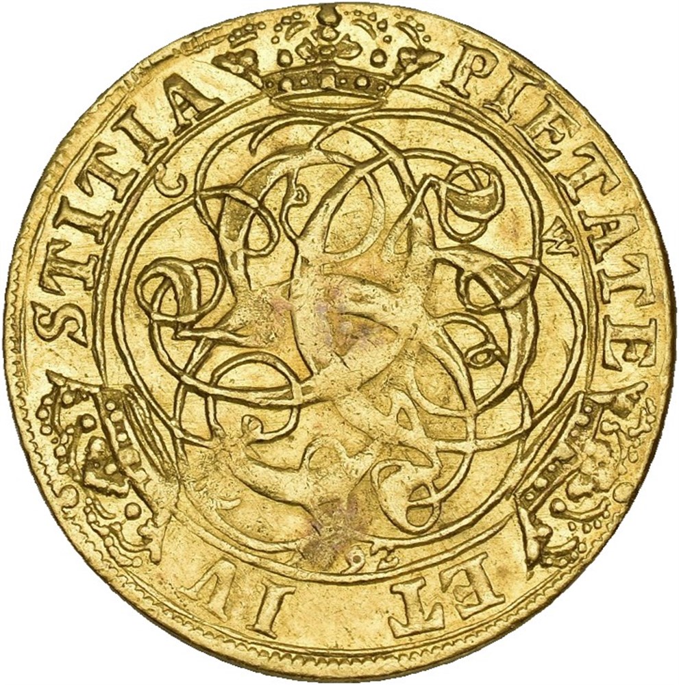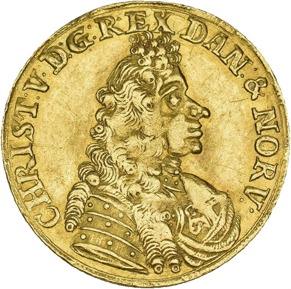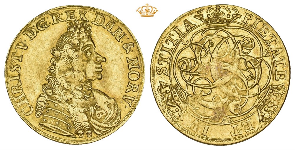 Dukat 1692, København. 3,47 g. Meget sjelden portrettype.