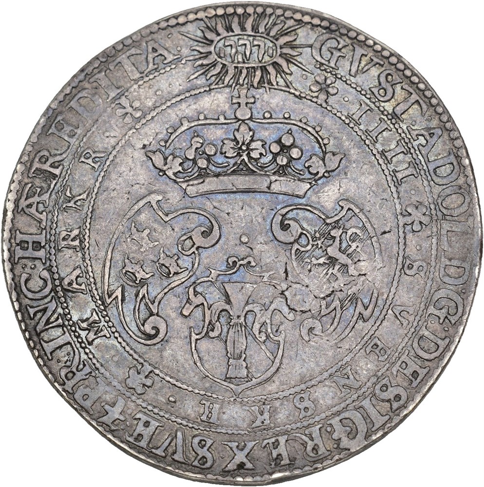 4 mark 1614, Vadstena. 19,15 g. Vakkert tonet med en blå iriserende patina.