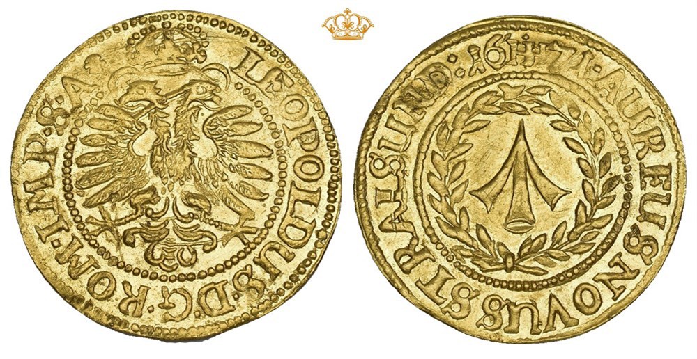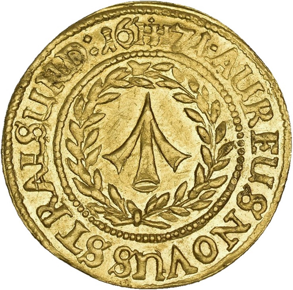 Dukat 1671, Stralsund. 3,44 g. Ekstremt sjelden.