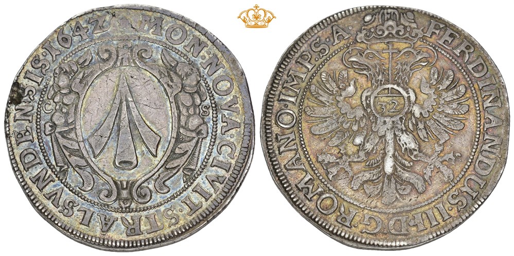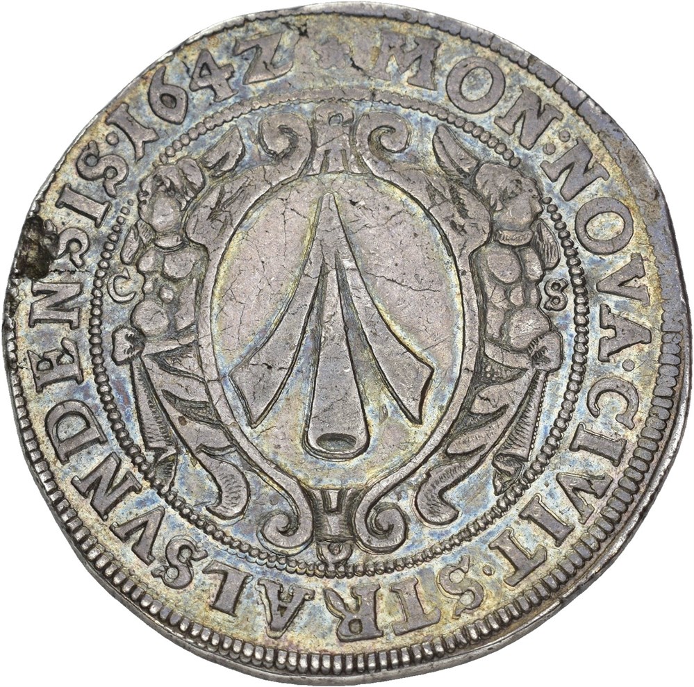 Taler 1642, Stralsund. 28,17 g. Blankettfeil. Ekstremt sjelden.