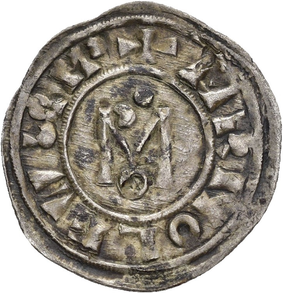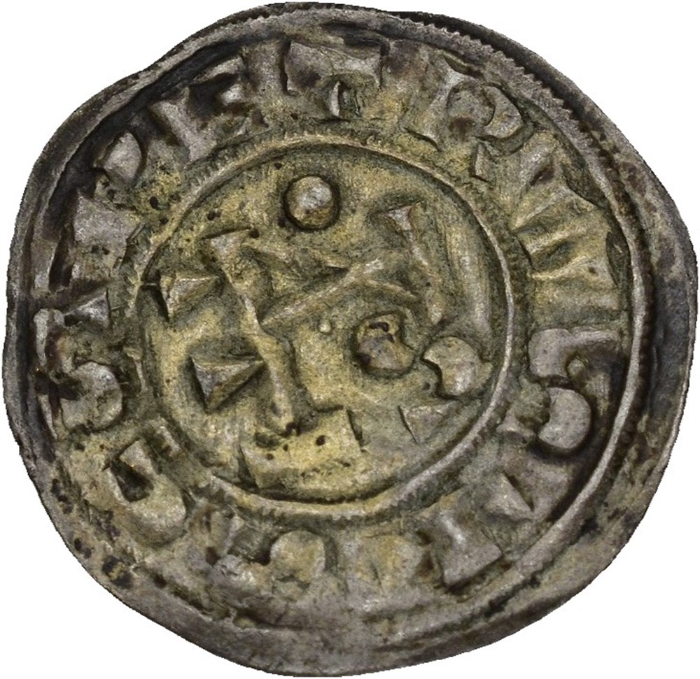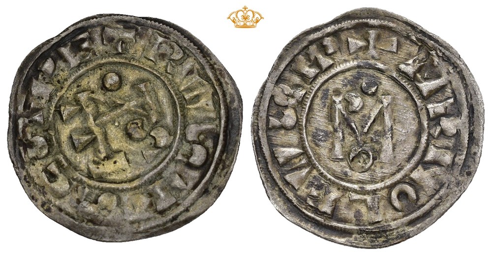 Denarius, Rome. 1.14 g. +SCS PETRWS, monogram. +ARNOLFVS IMP, monogram. Very rare.