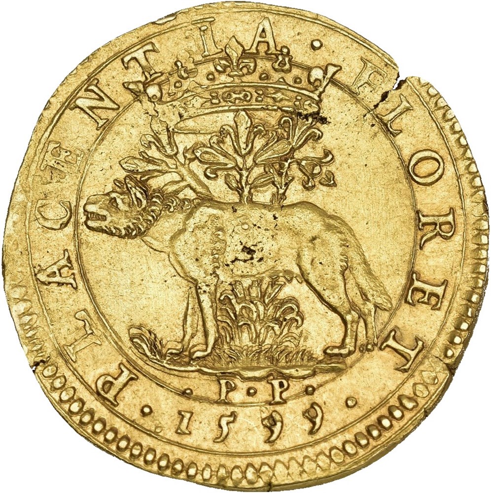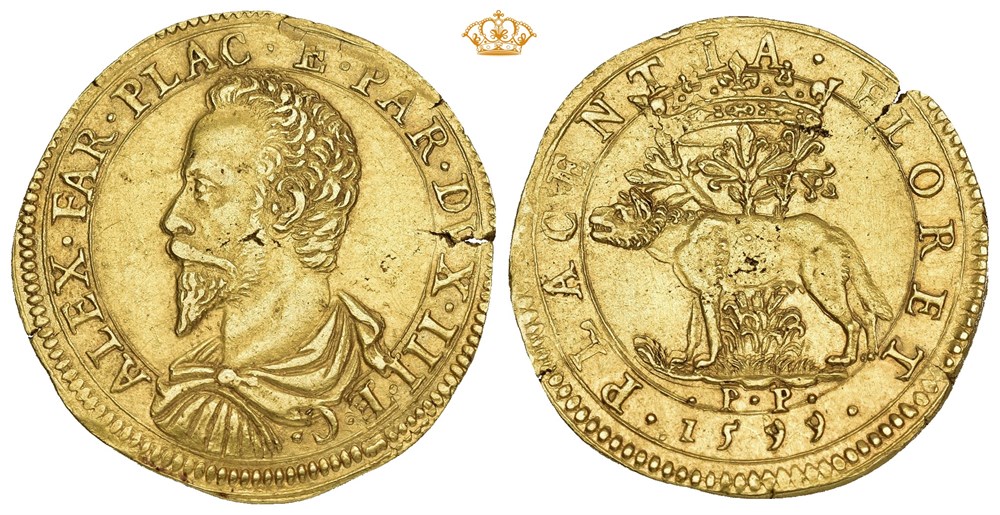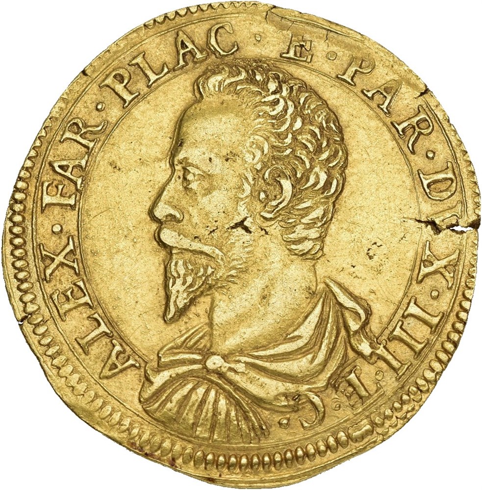2 Doppia 1599. 13.16 g. In the name of Alessandro Farnese.