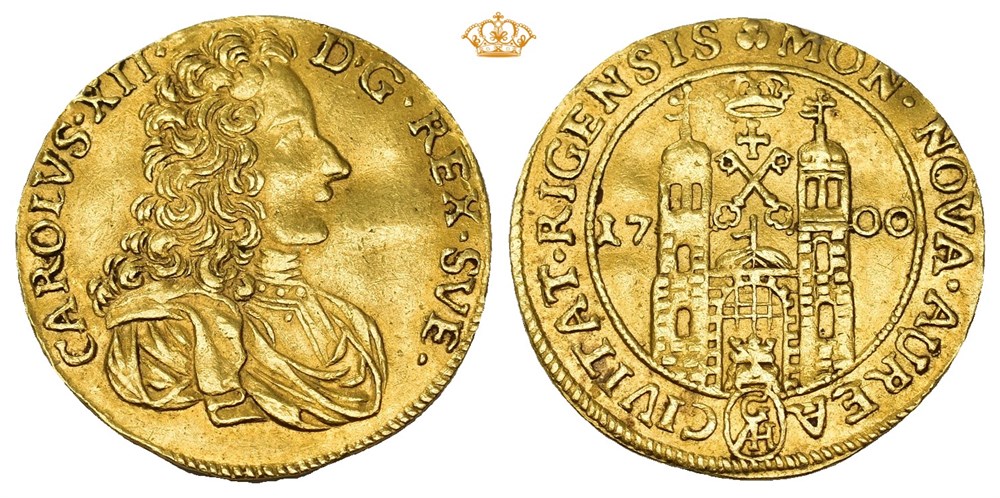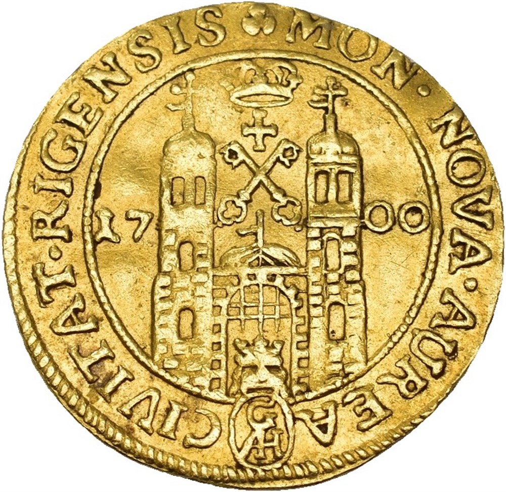 Dukat 1700, Riga. 3,49 g. Svakt buklet.