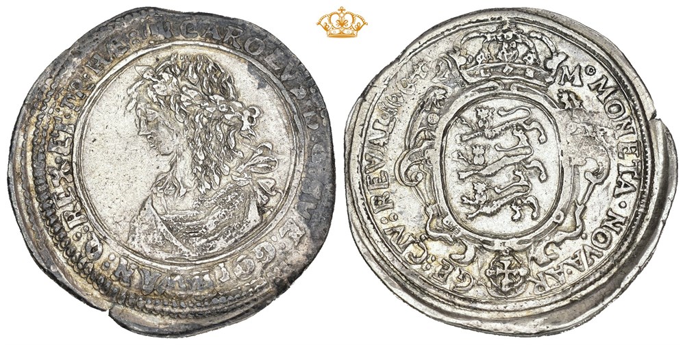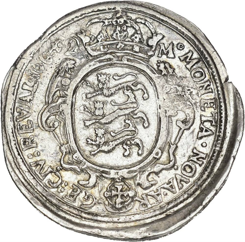 2 Mark 1664, Reval. 10,08 g. RRR. Rengjort, blankettfeil.