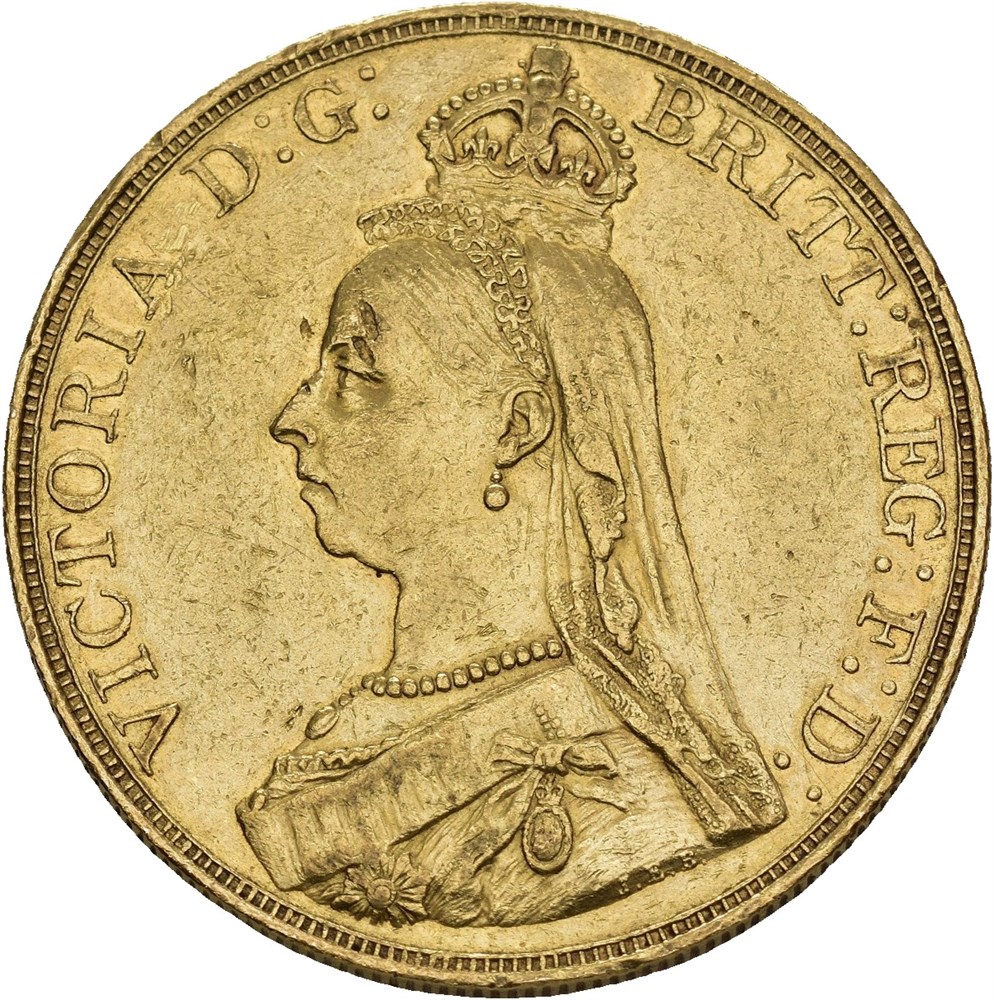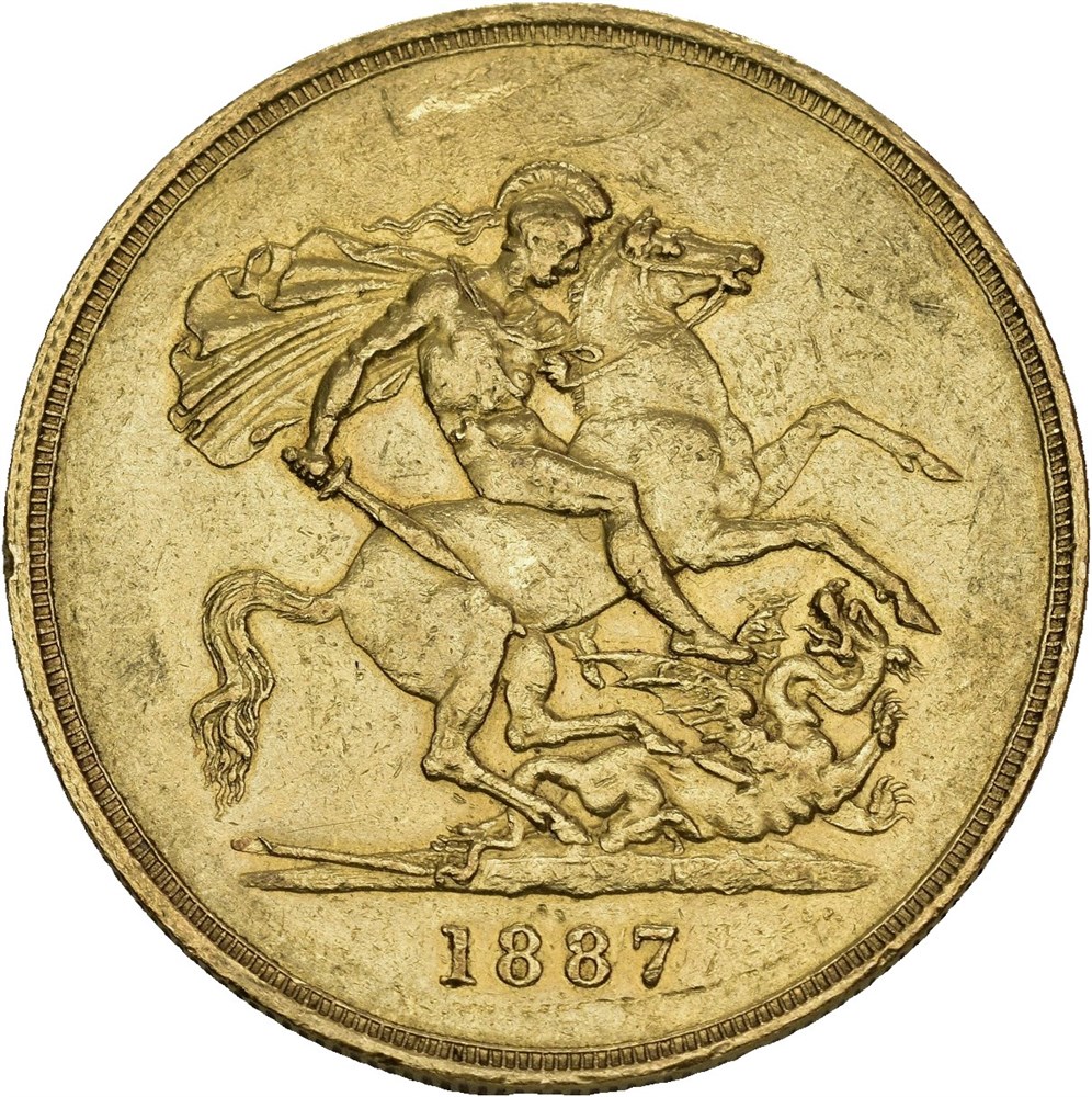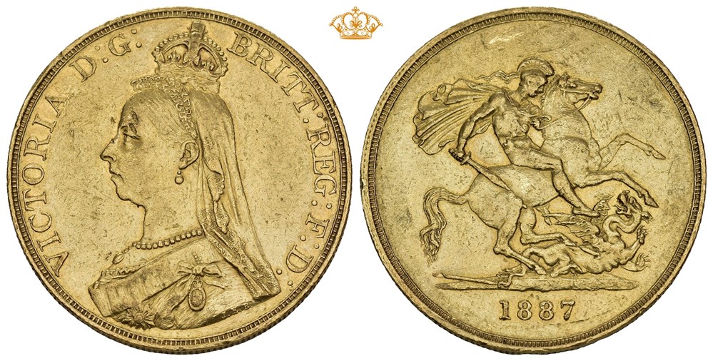 5 Pounds 1887, London. 40.03 g. Lightly cleaned, minor scuffs.
