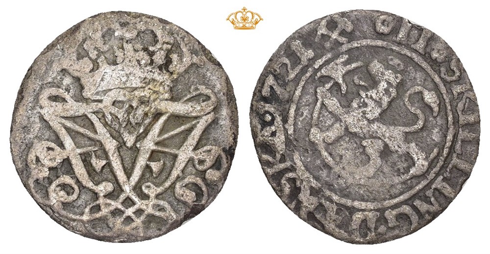 2 skilling 1721. S.4 Meget sjeldent årstall/very rare. Kantskader/edge damage
