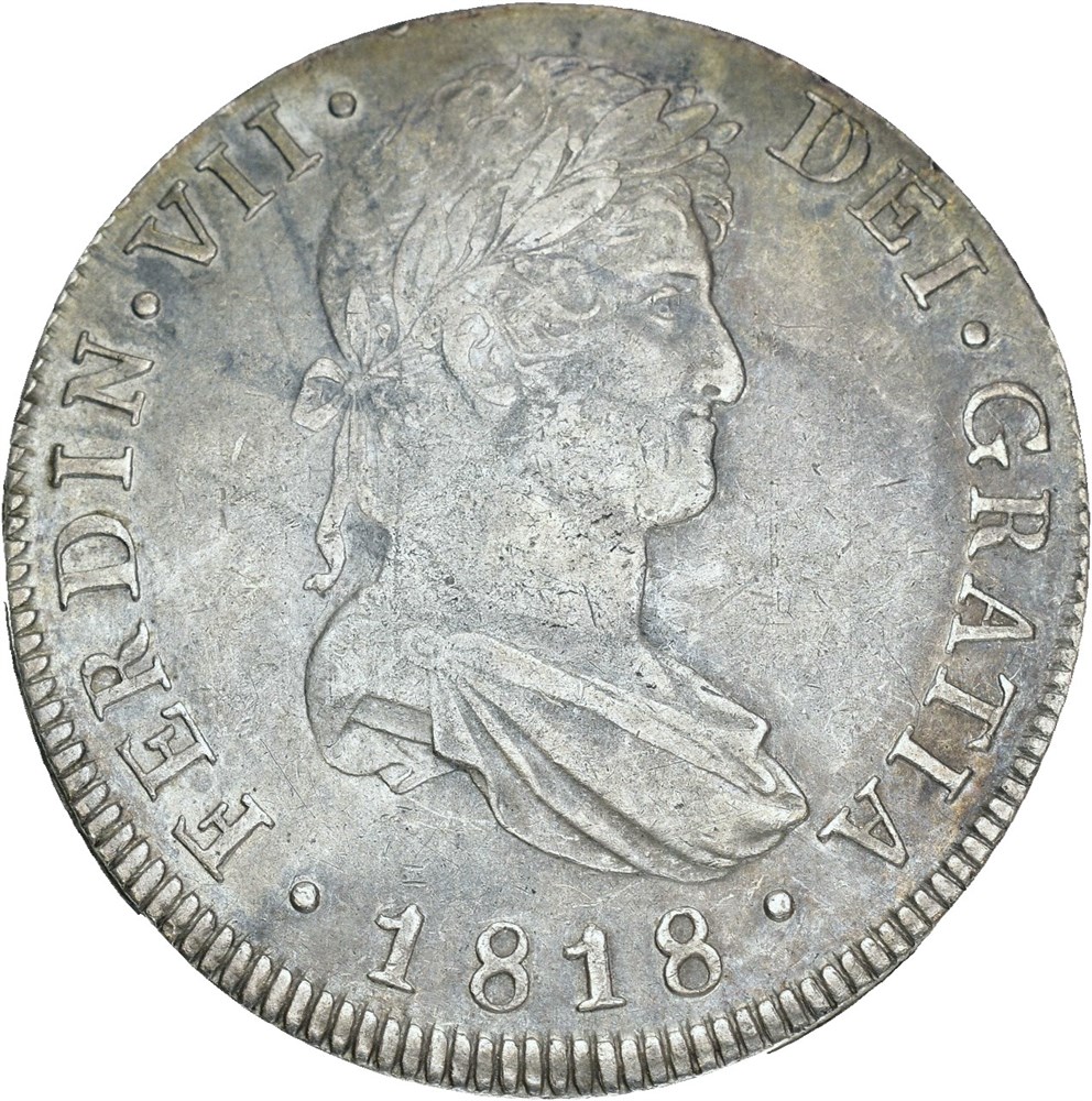 8 reales 1818 NG M, Nueva Guatemala. 26.99 g. Minor scratches.