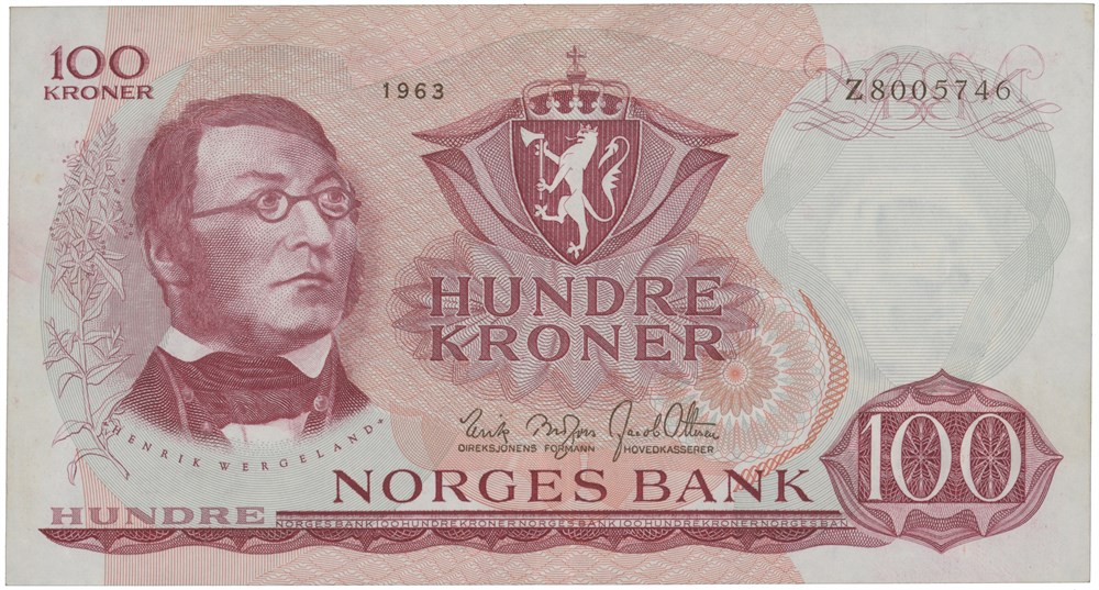 100 kroner 1963. Z8005746. Erstatningsseddel/replacement note (8-million). Sjelden/rare.