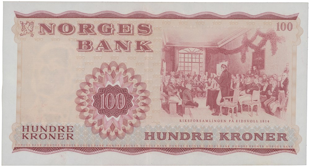100 kroner 1965. Z0486955. Erstatningsseddel/replacement note.