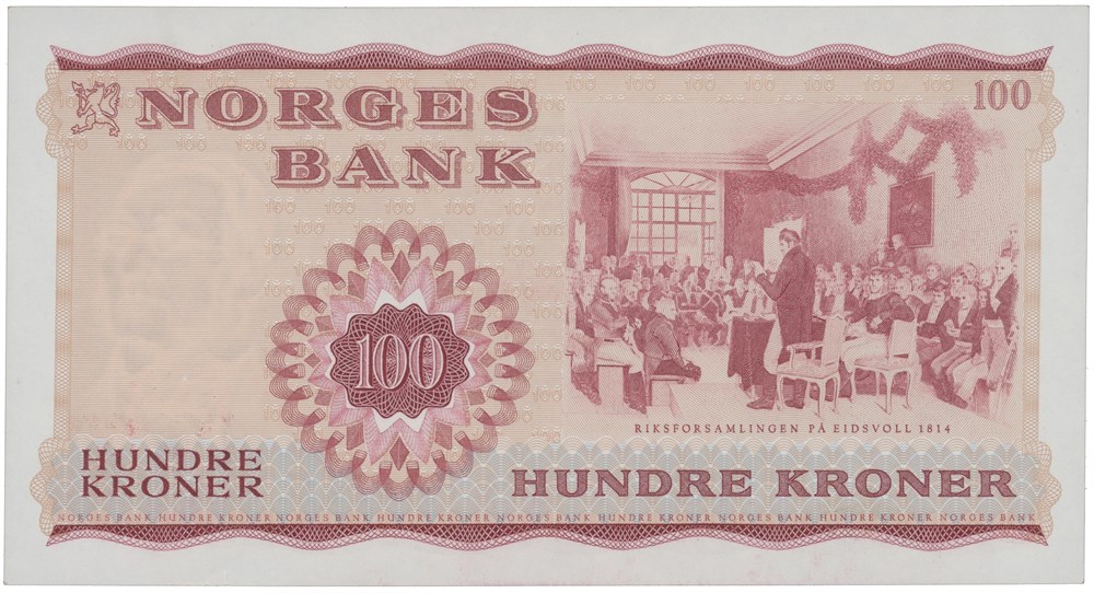 100 kroner 1975. Z0313655. Erstatningsseddel/replacement note (0-million). Ørliten kantrift/tiny margin tear.