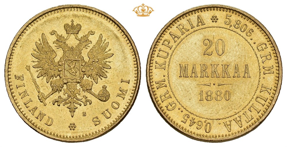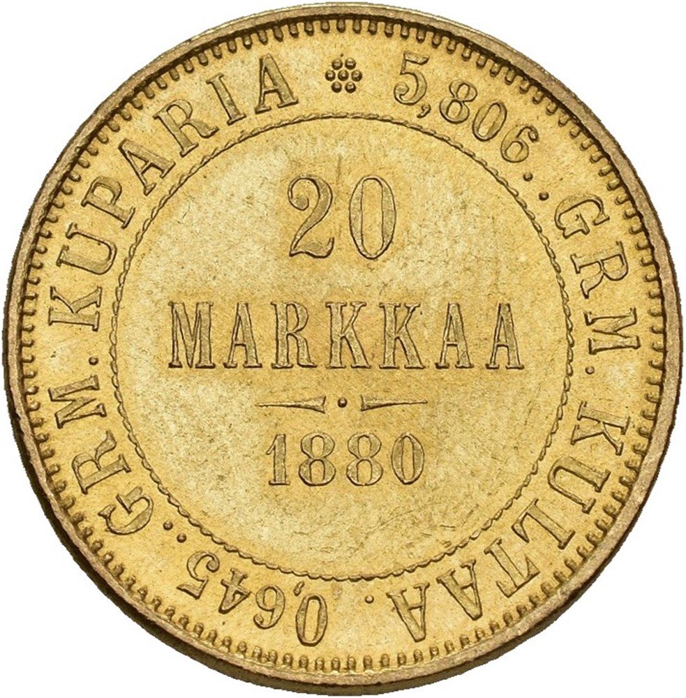 20 Markkaa 1880 S, Helsinki. 6.45 g.