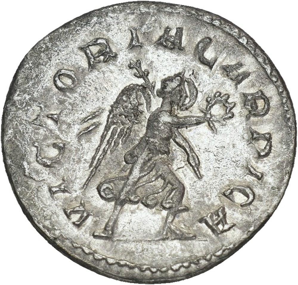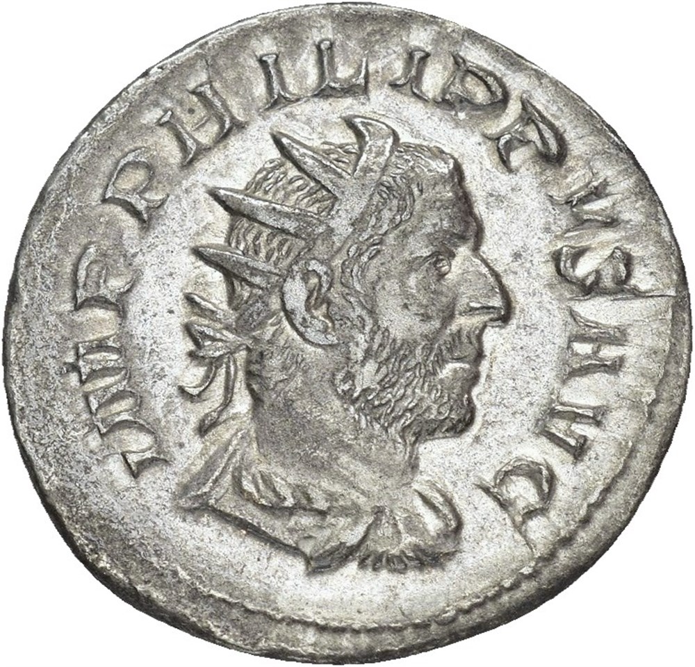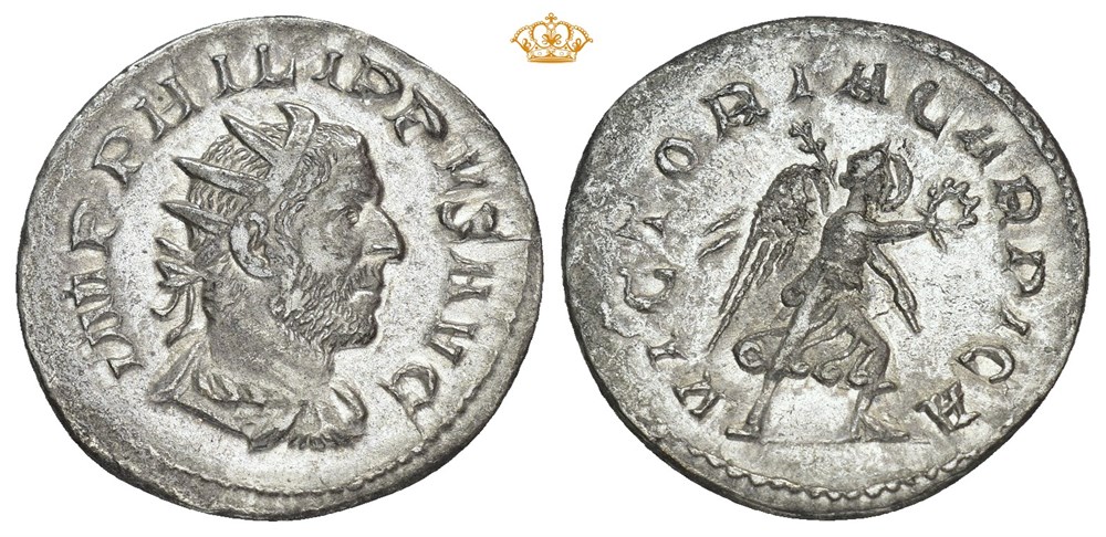 Philip I 244-249 AD. AR Antoninianus (20 mm; 3.52 g). Rome mint, struck circa 247-249 AD. Obverse: IMP PHILIPPVS AVG, Radiate, draped and cuirassed bust of Philip I right. Reverse: VICTORIA CARPICA, Victory advancing right, holding a wreath in her right hand and palm branch in left. Lightly toned.