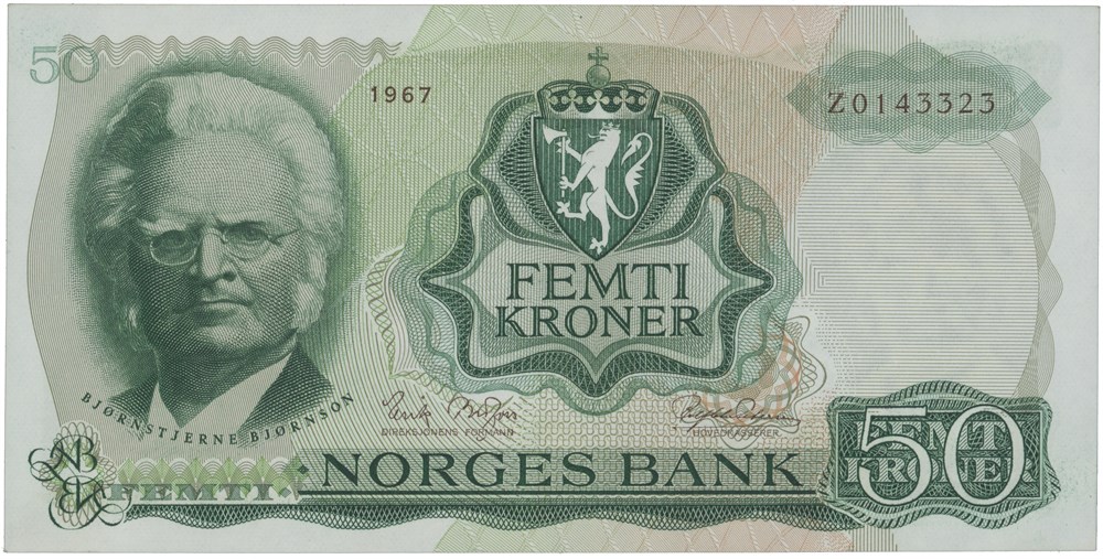 50 kroner 1967. Z0143323. Erstatningsseddel/replacement note.
