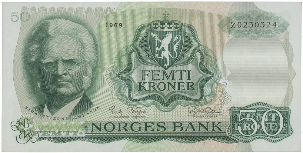 50 kroner 1969. Z0230324. Erstatningsseddel/replacement note.