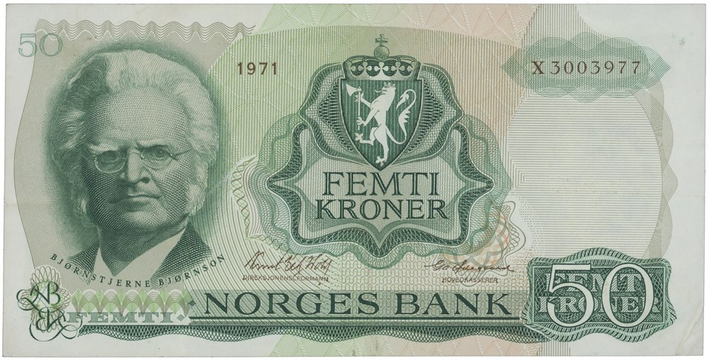 - 50 kroner 1971. X3003977. Erstatningsseddel/replacement note. (15416948)