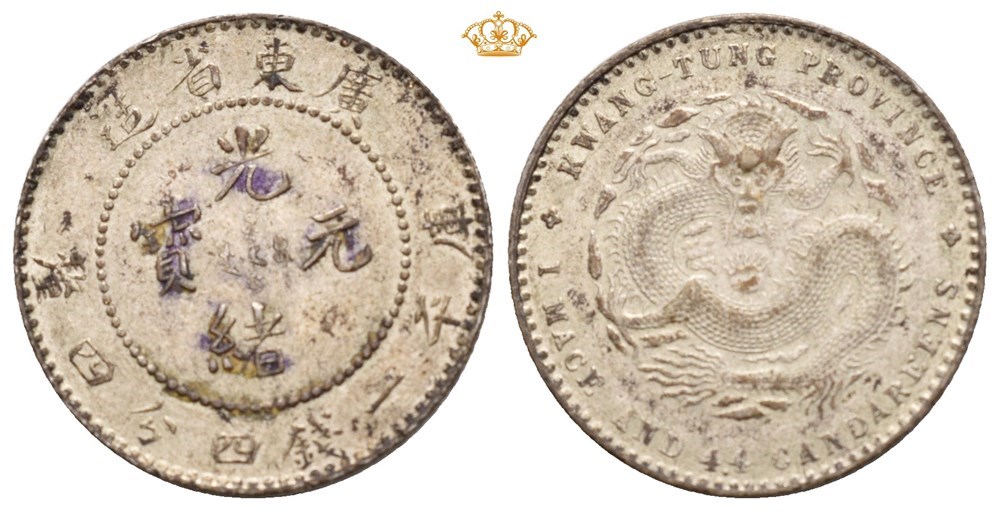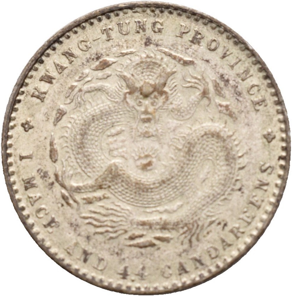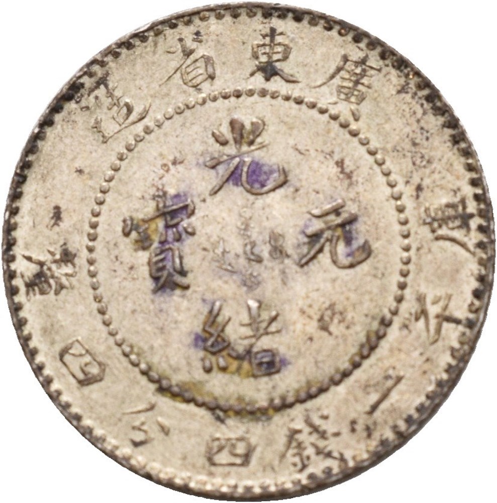 Kwangtung Province, 1890-1908, AR 20 Cents ND. Nice old cabinet toning.