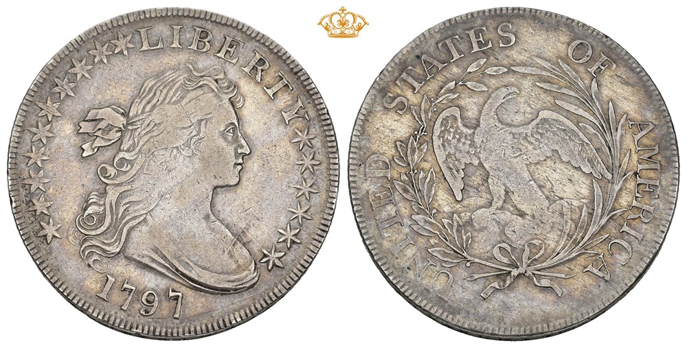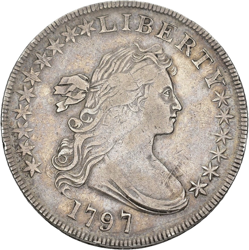 Dollar 1797, Philadelphia. 27.00 g. 10 stars left, 6 stars right.