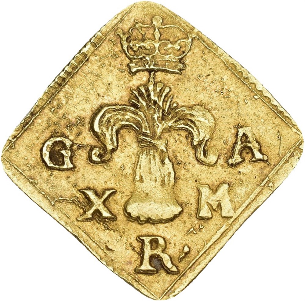 10 mark klipping 1626, Stockholm. 3,32 g. Stockholm. Preget med lett korrodert adversstempel.