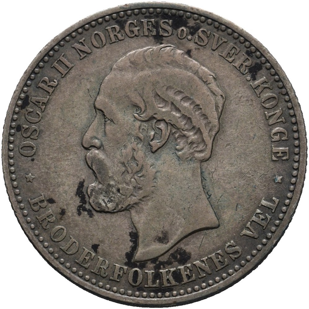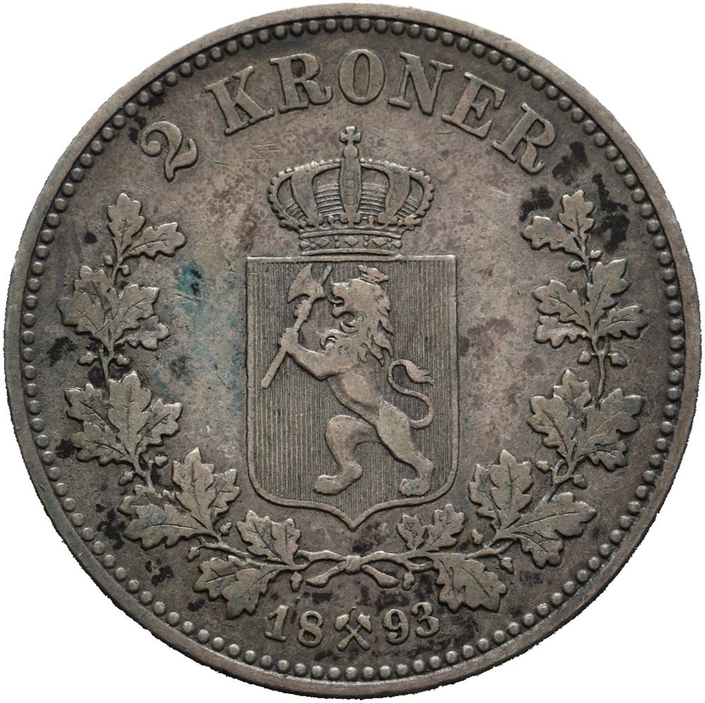 2 kroner 1893, noe grønt irr.
