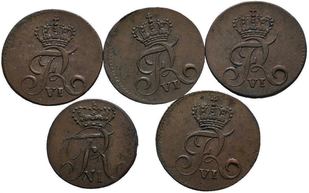1 skilling 1812, 5 stk, 4 stk Danmark, 1 stk Norge