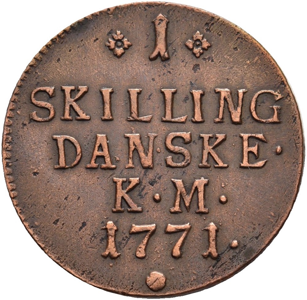 1 skilling 1771, renset, men i god kvalitet