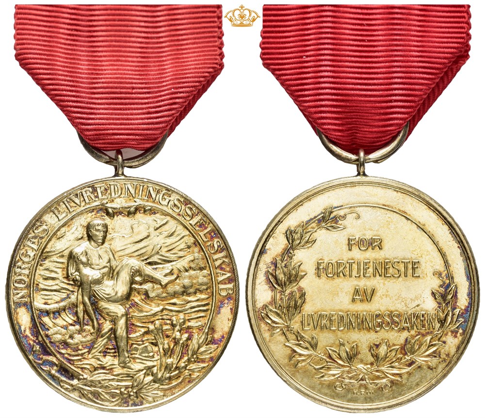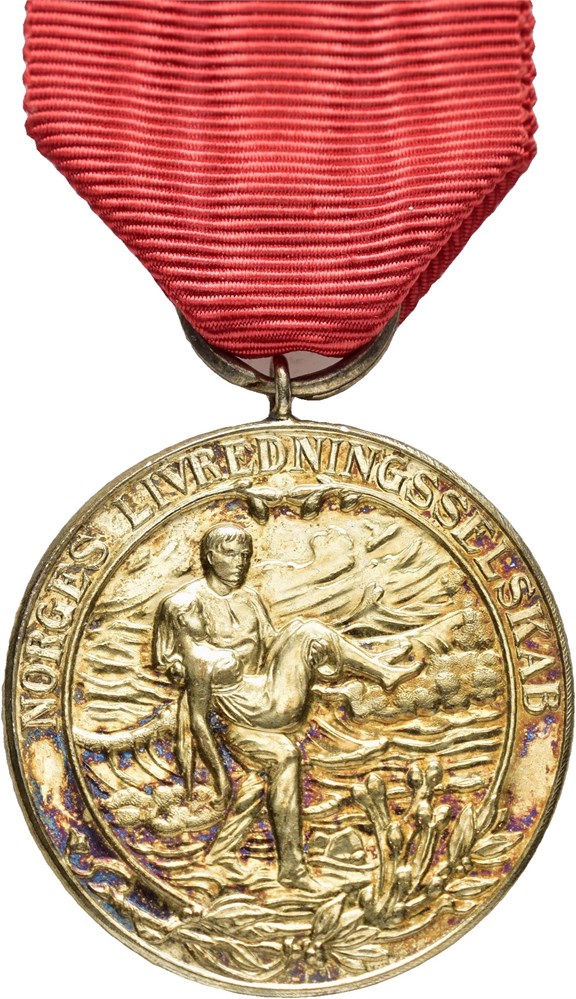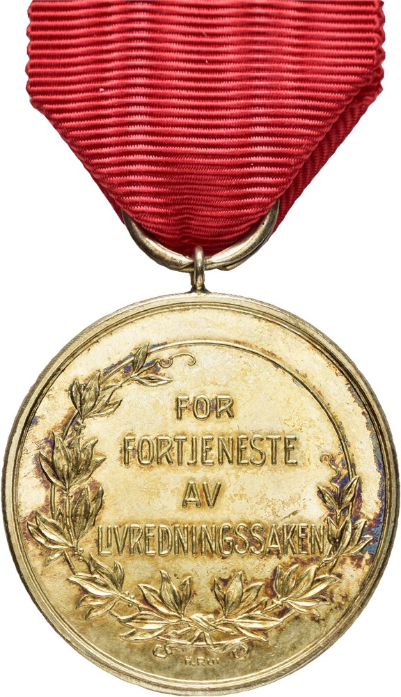 Norges Livredningsforbund med hempe og bånd. Sølv 31 mm
