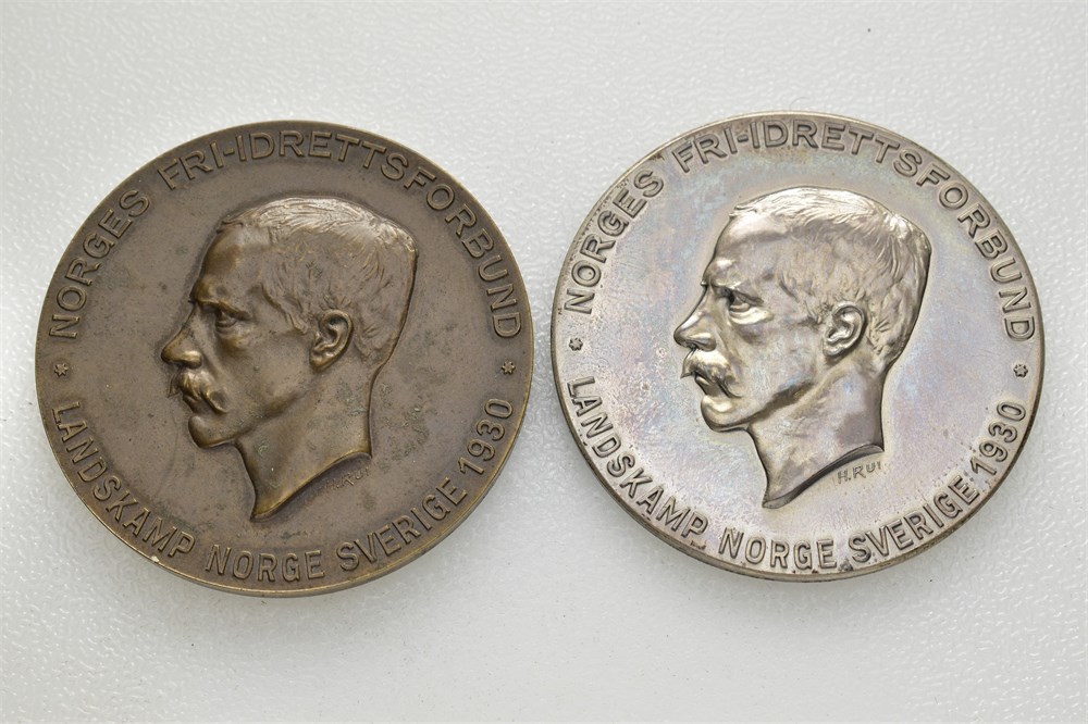 Norges friidrettsforbund. Landskamp 1930. Bronse og sølv. Lott 2 medaljer