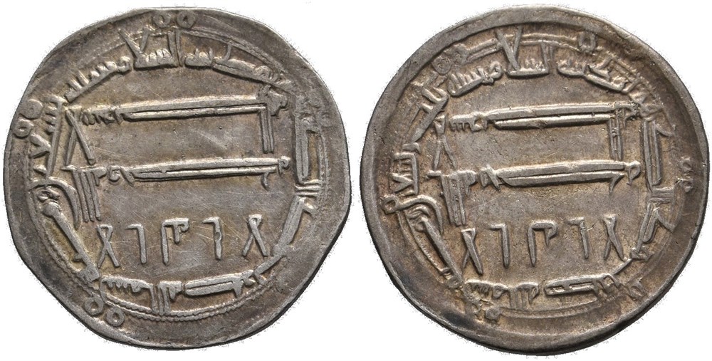 Lot of 2 AR Dirhams, Madinat-al-Salam min, AH 190 and 193