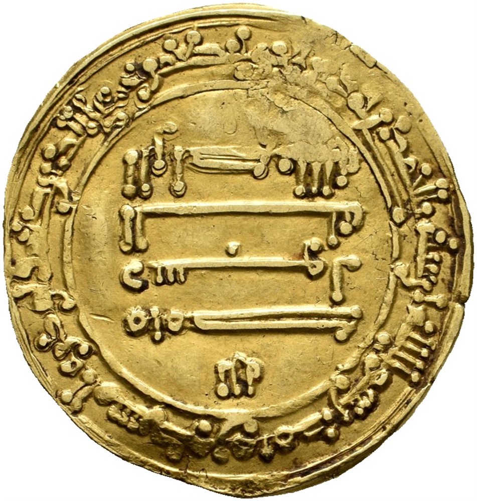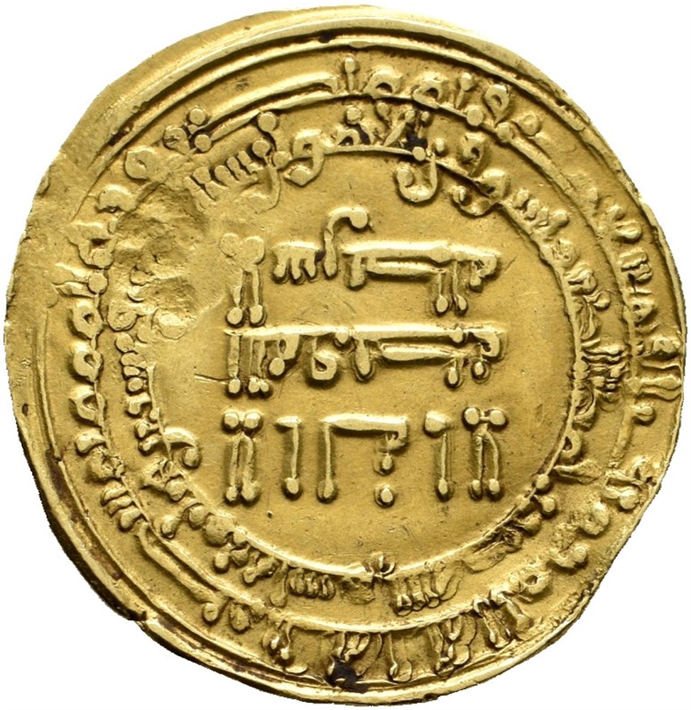 Al-Radi, AH 322-329. AV Dinar (3,95 g). Suq min al-Ahwaz mint, AH 327. A few punch marks in fields.