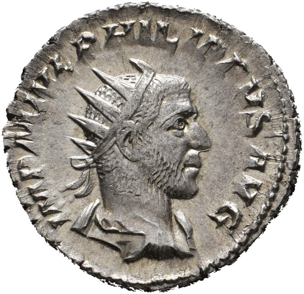 Philip I, AD 244-249. AR Antoninianus (3.85 g). Rome mint, struck AD 246. Radiate, draped, and cuirassed bust right / Annona standing left, holding grain ears over modius with right hand and cornucopia with left. Almost as struck and highly lustrous. Lightly toned.
