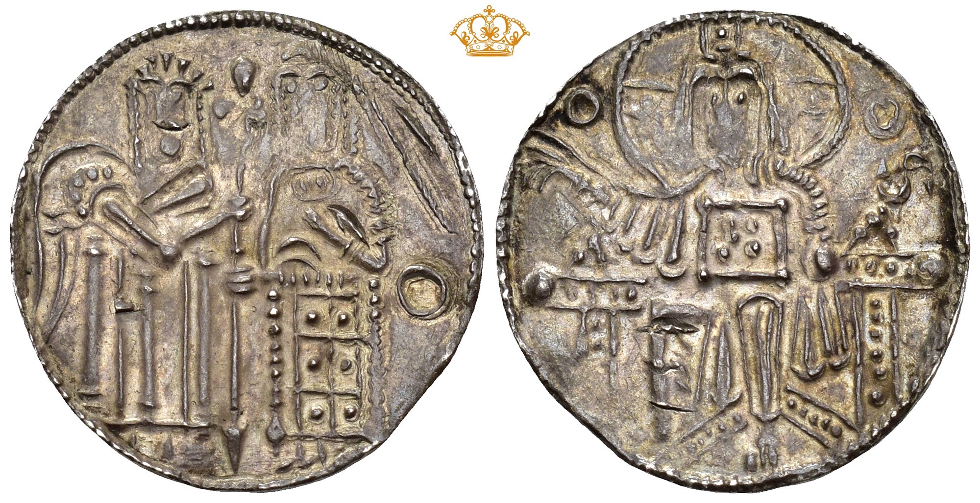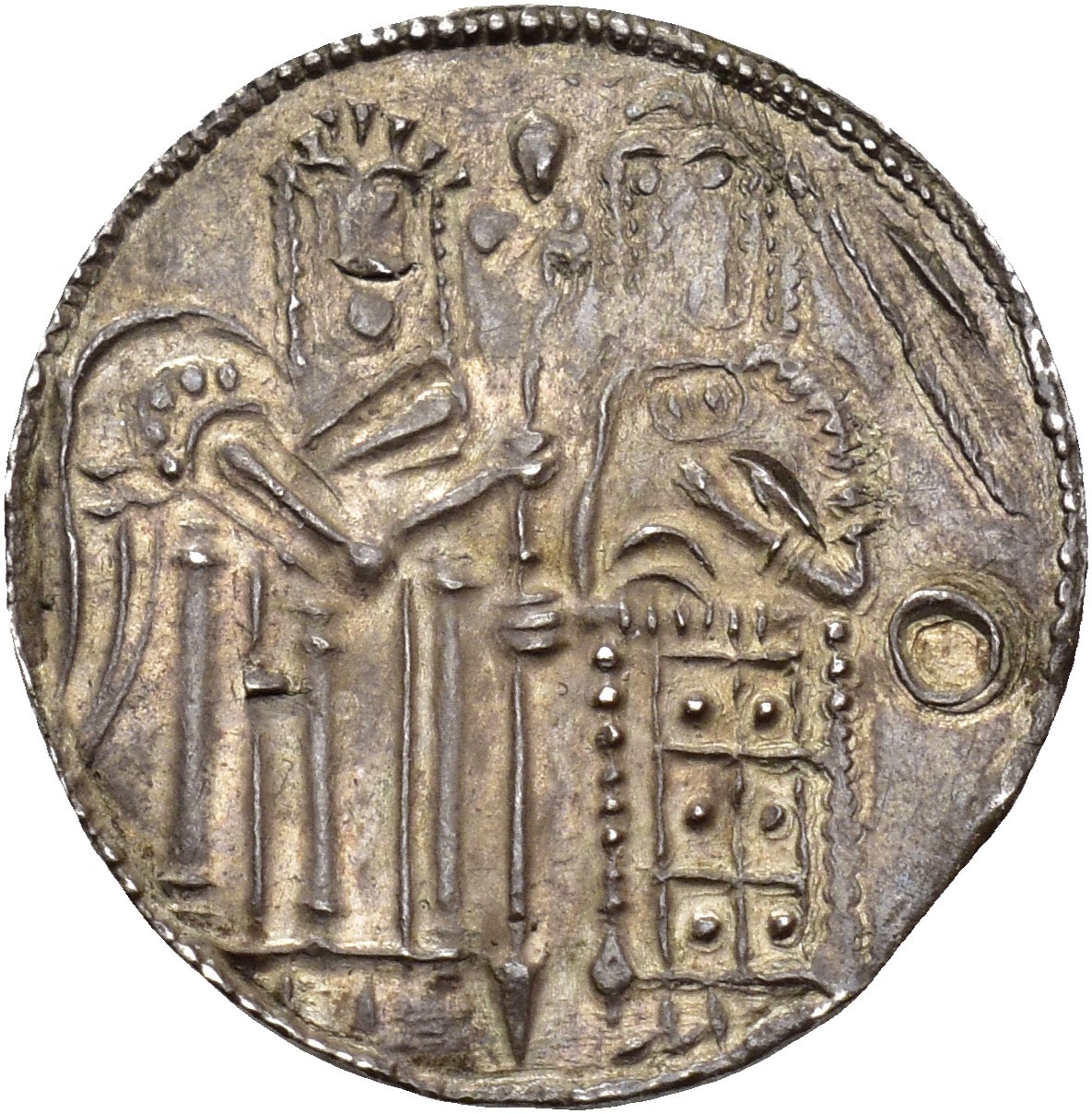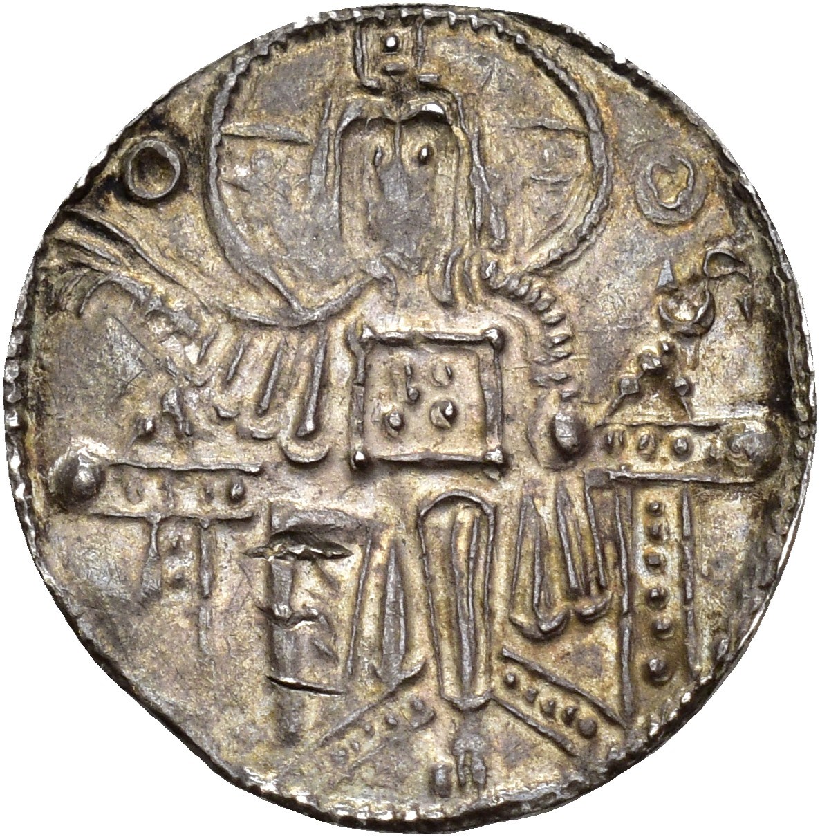 Allerede Hauberg anså i sitt standardverk fra år 1900 denne pregning for en mulig skuemynt (s. 214). I den retning peker de usedvanlig vakkert utførte stempler, som motivmessig nøye kopierer en solidus preget for den bysantinske keiser, Michael IV (1034-1041).