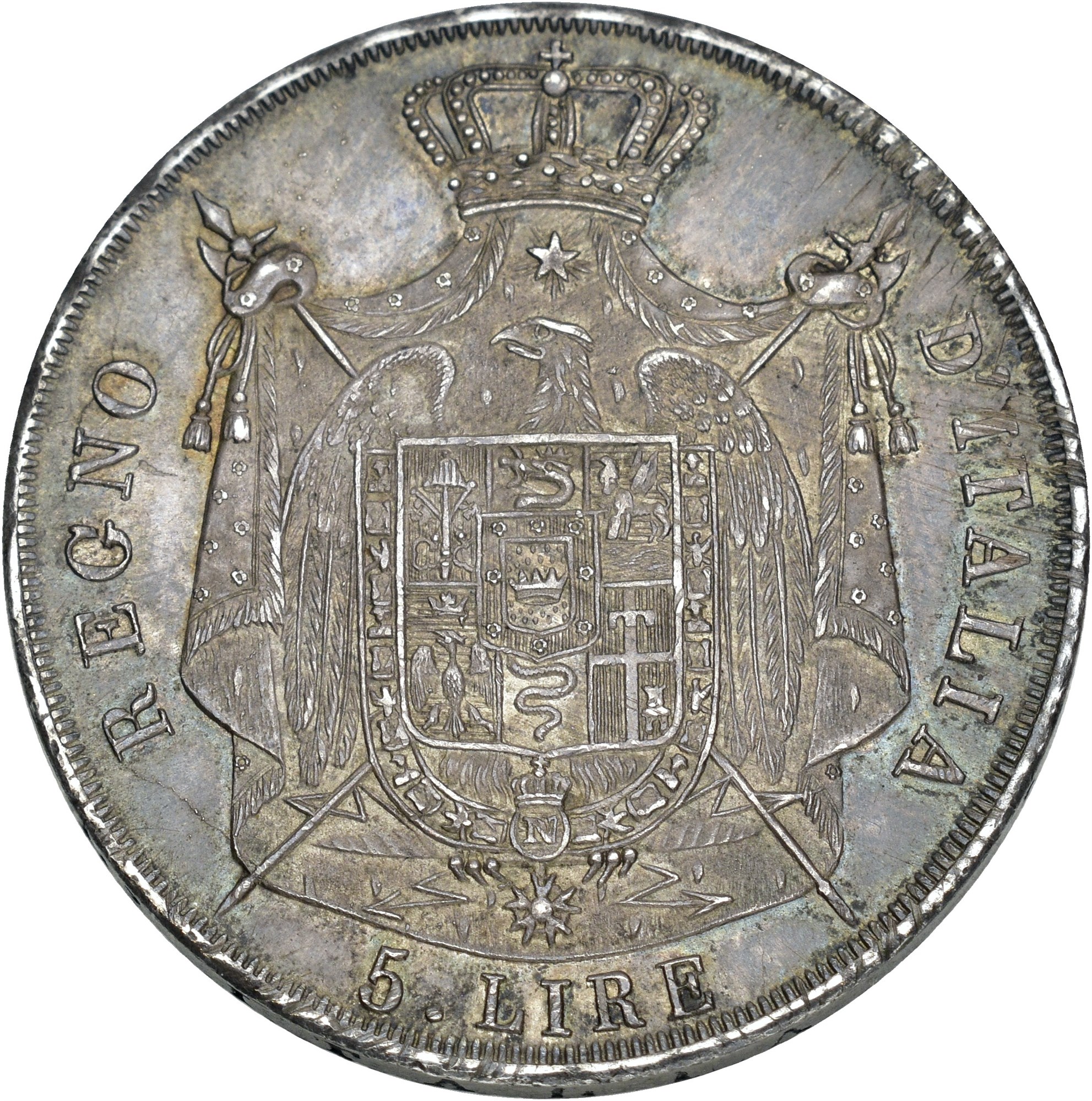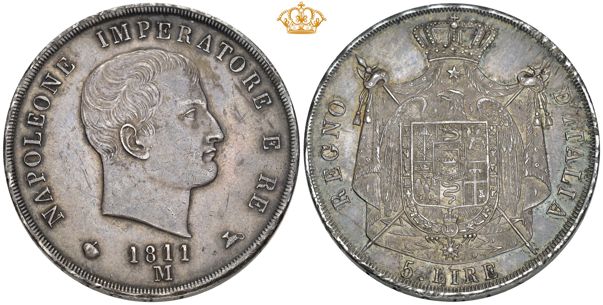 5 Lire 1811 M, Mailand. 25.05 g. Rare in this lovely condition.